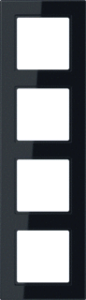 Jung afdekraam schakelmateriaal, kunststof, zwart, (bxhxd) 85x298x10mm, uitvoering oppervlakte glanzend, montagerichting horizontaal en verticaal, geschikt voor wandgoot, 4 eenheden, beschermingsgraad (IP) IP44, 1 eenheden horizontaal, RAL-nummer 9005, kwaliteit thermoplast,