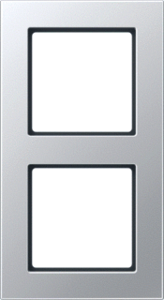 Jung afdekraam schakelmateriaal, kunststof, aluminium, (bxhxd) 85x156x10mm, uitvoering oppervlakte mat, montagerichting horizontaal en verticaal, geschikt voor wandgoot, 2 eenheden, beschermingsgraad (IP) IP44, 1 eenheden horizontaal, slagvastheid IK01, RAL-nummer 7035, kwaliteit thermoplast,