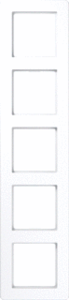 Jung afdekraam schakelmateriaal, kunststof, wit, (bxhxd) 85x369x10mm, uitvoering oppervlakte glanzend, montagerichting horizontaal en verticaal, geschikt voor wandgoot, 5 eenheden, beschermingsgraad (IP) IP44, 1 eenheden horizontaal, RAL-nummer 9016, kwaliteit thermoplast,