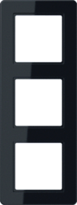 Jung afdekraam schakelmateriaal, kunststof, zwart, (bxhxd) 85x227x10mm, uitvoering oppervlakte glanzend, montagerichting horizontaal en verticaal, geschikt voor wandgoot, 3 eenheden, beschermingsgraad (IP) IP44, 1 eenheden horizontaal, RAL-nummer 9005, kwaliteit thermoplast,