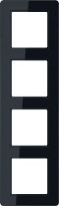Jung afdekraam schakelmateriaal, kunststof, zwart, (bxhxd) 85x298x10mm, uitvoering oppervlakte glanzend, montagerichting horizontaal en verticaal, geschikt voor wandgoot, 4 eenheden, beschermingsgraad (IP) IP44, 1 eenheden horizontaal, RAL-nummer 9005, kwaliteit thermoplast,