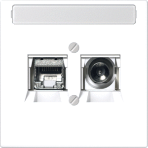 Jung inzetplaat schakelmateriaal, kunststof, wit, gebruik overig, samenstelling basiselement met centrale, inbouw (stucwerk), uitvoering oppervlakte glanzend, draagring, beschermingsgraad (IP) IP20, geschikt voor aantal connectoren 2, halogeenvrij, incl. connectoren, kwaliteit thermoplast,
