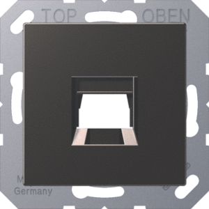 Jung A RANGE inzetplaat schakelmateriaal, kunststof, gebruik modular-Jack, samenstelling overig, opbouw, uitvoering oppervlakte mat, draagring, beschermingsgraad (IP) IP20, geschikt voor aantal connectoren 1, halogeenvrij, kwaliteit thermoplast, met stofbescherming