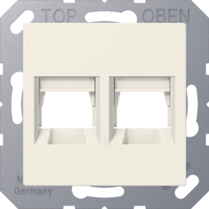Jung inzetplaat schakelmateriaal, kunststof, crème-wit/elektrowit, gebruik modular-Jack, samenstelling overig, opbouw, uitvoering oppervlakte glanzend, draagring, beschermingsgraad (IP) IP20, geschikt voor aantal connectoren 2, halogeenvrij, kwaliteit thermoplast, met stofbescherming