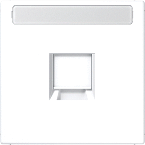 Jung inzetplaat schakelmateriaal, kunststof, wit, gebruik modular-Jack, samenstelling overig, opbouw, uitvoering oppervlakte glanzend, draagring, beschermingsgraad (IP) IP20, geschikt voor aantal connectoren 1, halogeenvrij, kwaliteit thermoplast, met stofbescherming