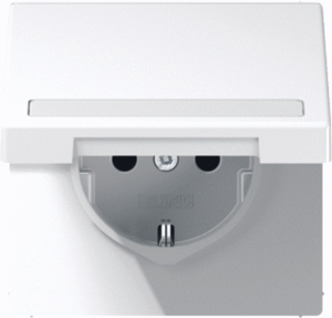 Jung LS RANGE wandcontactdoos (wcd schakelmat.), wit, 2 actieve contacten (rond), 1 eenheid, 1 fasen, aansluitwijze steekklem, met klapdeksel, met verhoogde aanraakbeveiliging, tekstveld/beschrijvingsvlak