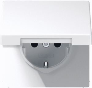 Jung LS RANGE wandcontactdoos (wcd schakelmat.), wit, 2 actieve contacten (rond), 1 eenheid, 1 fasen, aansluitwijze steekklem, met klapdeksel, met verhoogde aanraakbeveiliging