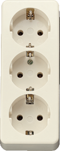Jung wandcontactdoos (wcd schakelmat.), crème-wit/elektrowit, uitvoering contactdoos CEE 7/3 (type, 2 actieve contacten (rond), 3 eenheden, 1 fasen, RAL-nummer 1013, met functieverlichting