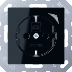 Jung A RANGE wandcontactdoos (wcd schakelmat.), zwart, uitvoering contactdoos CEE 7/3 (type, 2 actieve contacten (rond), 1 eenheid, 1 contactdozen schakelbaar, 1 fasen, opdruk/indicatie overig, aansluitwijze schroefklem, met verhoogde aanraakbeveiliging, RAL-nummer 9005, met functieverlichting