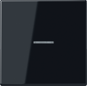 Jung LS RANGE bed.element / centr.pl. schakelmat., kunststof, zwart, uitvoering enkele wip, gebruik schakelaar/drukker, uitvoering oppervlakte glanzend, controlevenster/verlicht, beschermingsgraad (IP) IP44, RAL-nummer 9005, geschikt voor bussysteem-toetsaansl, halogeenvrij, kwaliteit duroplast,
