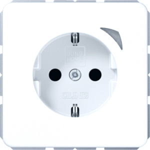 Jung CD RANGE wandcontactdoos (wcd schakelmat.), wit, uitvoering contactdoos CEE 7/3 (type, 2 actieve contacten (rond), 1 eenheid, 1 contactdozen schakelbaar, 1 fasen, opdruk/indicatie overig, aansluitwijze schroefklem, met verhoogde aanraakbeveiliging, RAL-nummer 9016, met functieverlichting