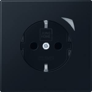 Jung LS RANGE wandcontactdoos (wcd schakelmat.), zwart, uitvoering contactdoos CEE 7/3 (type, 2 actieve contacten (rond), 1 eenheid, 1 contactdozen schakelbaar, 1 fasen, opdruk/indicatie overig, aansluitwijze schroefklem, met verhoogde aanraakbeveiliging, met functieverlichting