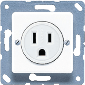 Jung 50x50mm wandcontactdoos (wcd schakelmat.), crème-wit/elektrowit, uitvoering NEMA, 2 actieve contacten (rond), 1 eenheid, 1 fasen, aansluitwijze schroefklem, RAL-nummer 1013