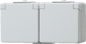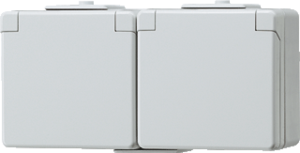 Jung WG600 wandcontactdoos (wcd schakelmat.), grijs, uitvoering contactdoos CEE 7/3 (type, 2 actieve contacten (rond), 2 eenheden, 1 fasen, aansluitwijze schroefklem, met klapdeksel, RAL-nummer 7035
