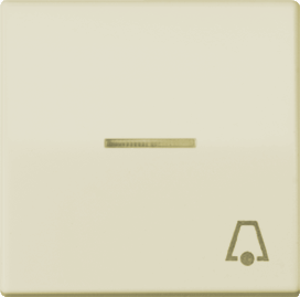 Jung AS500 bed.element / centr.pl. schakelmat., kunststof, crème-wit/elektrowit, uitvoering enkele wip, gebruik schakelaar/drukker, uitvoering oppervlakte glanzend, opdruk/indicatie symbool"bel", controlevenster/verlicht, beschermingsgraad (IP) IP44, RAL-nummer 1013, halogeenvrij, lens transparant,