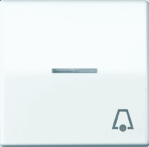 Jung AS500 bed.element / centr.pl. schakelmat., kunststof, wit, uitvoering enkele wip, gebruik schakelaar/drukker, uitvoering oppervlakte glanzend, opdruk/indicatie symbool"bel", controlevenster/verlicht, beschermingsgraad (IP) IP44, RAL-nummer 9016, halogeenvrij, lens transparant,