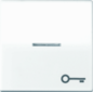 Jung AS500 bed.element / centr.pl. schakelmat., kunststof, wit, uitvoering enkele wip, gebruik schakelaar/drukker, uitvoering oppervlakte glanzend, opdruk/indicatie symbool"sleutel/deur", controlevenster/verlicht, beschermingsgraad (IP) IP44, RAL-nummer 9016, halogeenvrij, lens transparant,