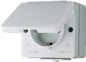 Jung WG600 wandcontactdoos (wcd schakelmat.), grijs, uitvoering contactdoos CEE 7/3 (type, 2 actieve contacten (rond), 1 eenheid, 1 fasen, aansluitwijze steekklem, met klapdeksel, RAL-nummer 7035