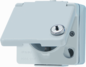 Jung WG600 wandcontactdoos (wcd schakelmat.), grijs, uitvoering contactdoos CEE 7/3 (type, 2 actieve contacten (rond), 1 eenheid, 1 fasen, aansluitwijze steekklem, met klapdeksel, RAL-nummer 7035, afsluitbaar