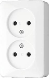 Jung AP600 wandcontactdoos (wcd schakelmat.), crème-wit/elektrowit, uitvoering overig, 2 actieve contacten (rond), 2 eenheden, 1 fasen, aansluitwijze steekklem, met verhoogde aanraakbeveiliging, RAL-nummer 1013