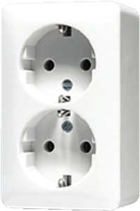 Jung AP600 wandcontactdoos (wcd schakelmat.), crème-wit/elektrowit, uitvoering contactdoos CEE 7/3 (type, 2 actieve contacten (rond), 2 eenheden, 1 fasen, aansluitwijze steekklem, met verhoogde aanraakbeveiliging, RAL-nummer 1013