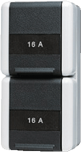 Jung WG800 wandcontactdoos (wcd schakelmat.), grijs, uitvoering contactdoos CEE 7/3 (type, 2 actieve contacten (rond), 2 eenheden, 1 fasen, aansluitwijze steekklem, met klapdeksel, tekstveld/beschrijvingsvlak, RAL-nummer 7035