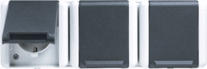 Jung WG800 wandcontactdoos (wcd schakelmat.), grijs, uitvoering contactdoos CEE 7/3 (type, 2 actieve contacten (rond), 3 eenheden, 1 modules (bij modulair sys, 1 fasen, aansluitwijze steekklem, met klapdeksel, tekstveld/beschrijvingsvlak, RAL-nummer 7035
