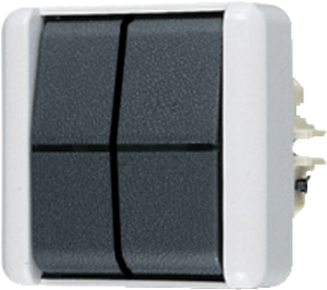 Jung WG800 installatieschakelaar, kunststof, grijs, opbouw, type schakeling serieschakelaar, bedieningswijze wip/drukker, samenstelling basiselement met bovendee, halogeenvrij, uitvoering oppervlakte glanzend, verlichting optioneel, oppervlaktebescherming overig, 2 wippen,