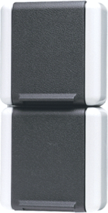 Jung WG800 wandcontactdoos (wcd schakelmat.), grijs, uitvoering contactdoos CEE 7/3 (type, 2 actieve contacten (rond), 2 eenheden, 1 fasen, aansluitwijze steekklem, met klapdeksel, RAL-nummer 7035