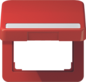 Jung afdekraam schakelmateriaal, kunststof, rood, (bxhxd) 67x67x15mm, uitvoering oppervlakte glanzend, montagerichting horizontaal en verticaal, geschikt voor wandgoot, tekstveld/beschrijvingsvlak, 1 eenheid, beschermingsgraad (IP) IP44, met klapdeksel, 1 eenheden horizontaal, RAL-nummer 3003,