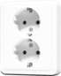 Jung CD500 wandcontactdoos (wcd schakelmat.), wit, uitvoering contactdoos CEE 7/3 (type, 2 actieve contacten (rond), 2 eenheden, 1 fasen, aansluitwijze steekklem, RAL-nummer 9016