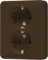 Jung wandcontactdoos (wcd schakelmat.), bruin, uitvoering contactdoos CEE 7/3 (type, 2 actieve contacten (rond), 2 eenheden, 1 fasen, aansluitwijze steekklem, met verhoogde aanraakbeveiliging, RAL-nummer 8022