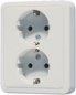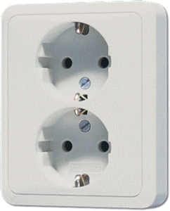 Jung wandcontactdoos (wcd schakelmat.), grijs, uitvoering contactdoos CEE 7/3 (type, 2 actieve contacten (rond), 2 eenheden, 1 fasen, aansluitwijze steekklem, met verhoogde aanraakbeveiliging, RAL-nummer 7035