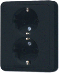 Jung wandcontactdoos (wcd schakelmat.), zwart, uitvoering contactdoos CEE 7/3 (type, 2 actieve contacten (rond), 2 eenheden, 1 fasen, aansluitwijze steekklem, met verhoogde aanraakbeveiliging, RAL-nummer 9005
