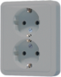 Jung wandcontactdoos (wcd schakelmat.), grijs, uitvoering contactdoos CEE 7/3 (type, 2 actieve contacten (rond), 2 eenheden, 1 fasen, aansluitwijze steekklem, RAL-nummer 7038