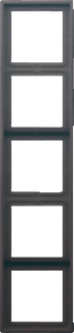 Jung LS990 afdekraam schakelmateriaal, kunststof, zwart, (bxhxd) 81x365x11mm, uitvoering oppervlakte glanzend, montagerichting horizontaal en verticaal, geschikt voor wandgoot, 5 eenheden, beschermingsgraad (IP) IP44, 1 eenheden horizontaal, RAL-nummer 9005, kwaliteit duroplast,