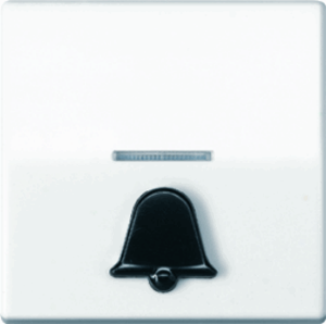 Jung AS500 bed.element / centr.pl. schakelmat., kunststof, wit, uitvoering enkele wip, gebruik schakelaar/drukker, uitvoering oppervlakte glanzend, opdruk/indicatie symbool"bel", controlevenster/verlicht, beschermingsgraad (IP) IP44, RAL-nummer 9016, aftastsymbool / barrièrevrij, halogeenvrij,