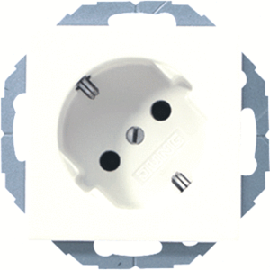 Jung wandcontactdoos (wcd schakelmat.), crème-wit/elektrowit, uitvoering contactdoos CEE 7/3 (type, 2 actieve contacten (rond), 1 eenheid, 1 fasen, aansluitwijze steekklem, RAL-nummer 1013