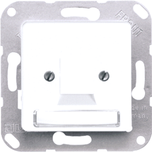 Jung inzetplaat schakelmateriaal, kunststof, wit, gebruik modular-Jack, samenstelling overig, opbouw, uitvoering oppervlakte glanzend, draagring, beschermingsgraad (IP) IP20, geschikt voor aantal connectoren 1, halogeenvrij, kwaliteit thermoplast, met stofbescherming
