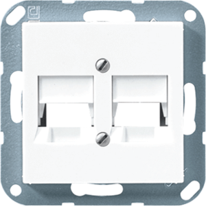 Jung AS500 inzetplaat schakelmateriaal, kunststof, crème-wit/elektrowit, gebruik modular-Jack, samenstelling overig, opbouw, uitvoering oppervlakte glanzend, draagring, variant wit, 2 aansluitingen, T.b.v. Jack ITT, beschermingsgraad (IP) IP20, geschikt voor aantal connectoren 2, halogeenvrij,