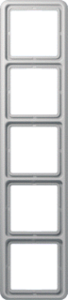 Jung afdekraam schakelmateriaal, kunststof, grijs, (bxhxd) 81x365x10mm, uitvoering oppervlakte glanzend, montagerichting horizontaal en verticaal, geschikt voor wandgoot, 5 eenheden, beschermingsgraad (IP) IP44, 1 eenheden horizontaal, RAL-nummer 7035, kwaliteit thermoplast,
