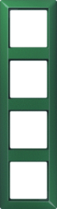 Jung afdekraam schakelmateriaal, kunststof, groen, (bxhxd) 80.5x293.5x10mm, uitvoering oppervlakte glanzend, montagerichting horizontaal en verticaal, geschikt voor wandgoot, 4 eenheden, beschermingsgraad (IP) IP44, 1 eenheden horizontaal, RAL-nummer 6029, kwaliteit thermoplast,