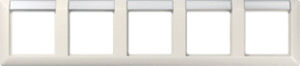 Jung AS500 afdekraam schakelmateriaal, kunststof, wit, (bxhxd) 364.5x80.5x10mm, uitvoering oppervlakte glanzend, montagerichting horizontaal, geschikt voor wandgoot, tekstveld/beschrijvingsvlak, 5 eenheden, beschermingsgraad (IP) IP44, 5 eenheden horizontaal, RAL-nummer 1013, kwaliteit duroplast,