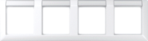 Jung AS500 afdekraam schakelmateriaal, kunststof, wit, (bxhxd) 293.5x80.5x10mm, uitvoering oppervlakte glanzend, montagerichting horizontaal, geschikt voor wandgoot, tekstveld/beschrijvingsvlak, 4 eenheden, beschermingsgraad (IP) IP44, 4 eenheden horizontaal, RAL-nummer 9016, kwaliteit duroplast,