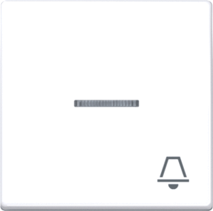Jung bed.element / centr.pl. schakelmat., kunststof, wit, uitvoering enkele wip, gebruik schakelaar/drukker, uitvoering oppervlakte glanzend, opdruk/indicatie symbool"bel", controlevenster/verlicht, beschermingsgraad (IP) IP44, RAL-nummer 9016, halogeenvrij, kwaliteit duroplast,