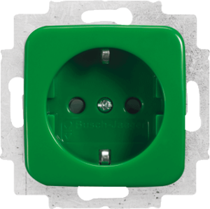 Abb Busch-Jaeger SI wandcontactdoos (wcd schakelmat.), groen, uitvoering contactdoos CEE 7/3 (type, aardcontact randaarde clips, 2 actieve contacten (rond), 1 eenheid, 1 modules (bij modulair sys, 1 fasen, aansluitwijze steekklem, RAL-nummer 6018, geïsoleerde montage