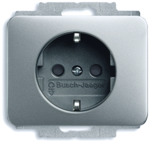 Abb Busch-Jaeger Alpha wandcontactdoos (wcd schakelmat.), titanium, uitvoering contactdoos CEE 7/3 (type, aardcontact randaarde clips, 2 actieve contacten (rond), 1 eenheid, 1 modules (bij modulair sys, 1 fasen, aansluitwijze steekklem, met verhoogde aanraakbeveiliging, geïsoleerde montage