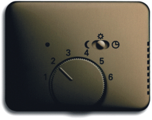 Abb Busch-Jaeger Alpha bed.element / centr.pl. schakelmat., kunststof, brons, uitvoering draaiknop, gebruik thermostaat, uitvoering oppervlakte mat, opdruk/indicatie diverse symbolen, beschermingsgraad (IP) IP20, halogeenvrij, kwaliteit thermoplast, oppervlaktebescherming gelakt, slagvastheid IK03