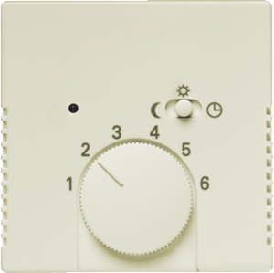 Abb Busch-Jaeger Future, Solo, Carat bed.element / centr.pl. schakelmat., kunststof, beige, uitvoering draaiknop, gebruik thermostaat, uitvoering oppervlakte glanzend, opdruk/indicatie diverse symbolen, beschermingsgraad (IP) IP20, RAL-nummer 1013, halogeenvrij, kwaliteit thermoplast,