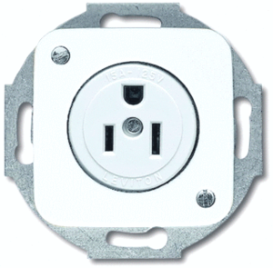 Abb Busch-Jaeger Reflex SI wandcontactdoos (wcd schakelmat.), wit, uitvoering USA/CA (NEMA 5-15) (type, aardcontact overig, 2 actieve contacten (vlak), 1 eenheid, 1 modules (bij modulair sys, 1 fasen, aansluitwijze steekklem, RAL-nummer 9010, geïsoleerde montage